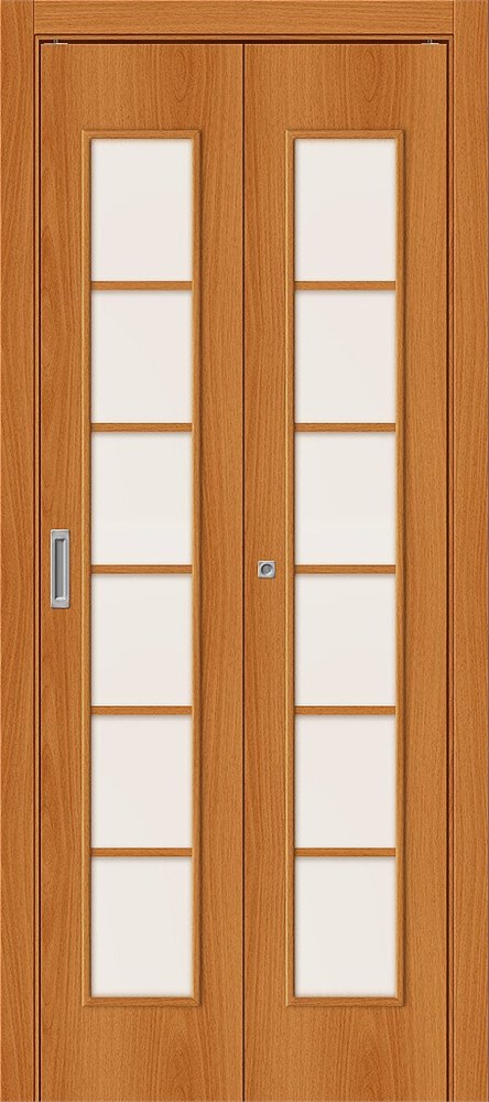 Межкомнатная складная дверь 200*40 два ДП, 2С, Л-12 (МиланОрех) / Сатинато , Финиш Флекс