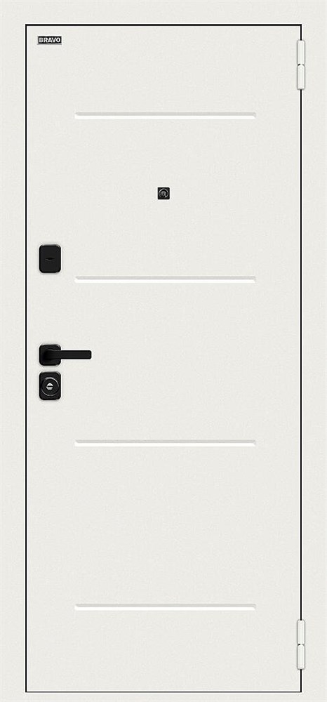 Дверь входная 205*96 Bravo R Аура/SBlack, Шагрень белая/White Silk, Левое