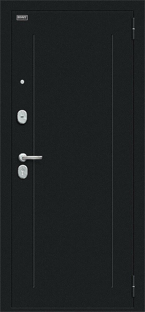 Дверь входная 205*86 Bravo R Флэш, Букле черное/Bianco Veralinga, Левое с зеркалом