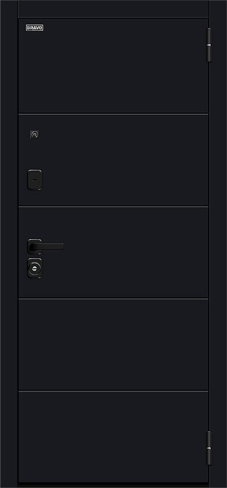 Дверь входная 205*96 Bravo R Флэт/SBlack, Black Shell/White Silk, Правое с зеркалом