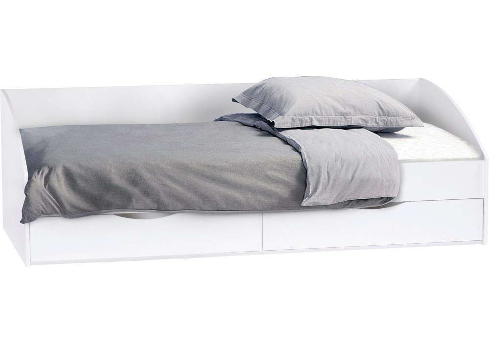 Материал ножек - без ножек; Ортопедическое основание - в комплекте; Материал ортопедического основания - настил; Цвет каркаса - Белый; Ширина - 95; Глубина - 203,2; Высота - 90; Размер спального места - 90 х 200; Высота изножья - 65; Высота изголовья - 65; Длина - 203,2;