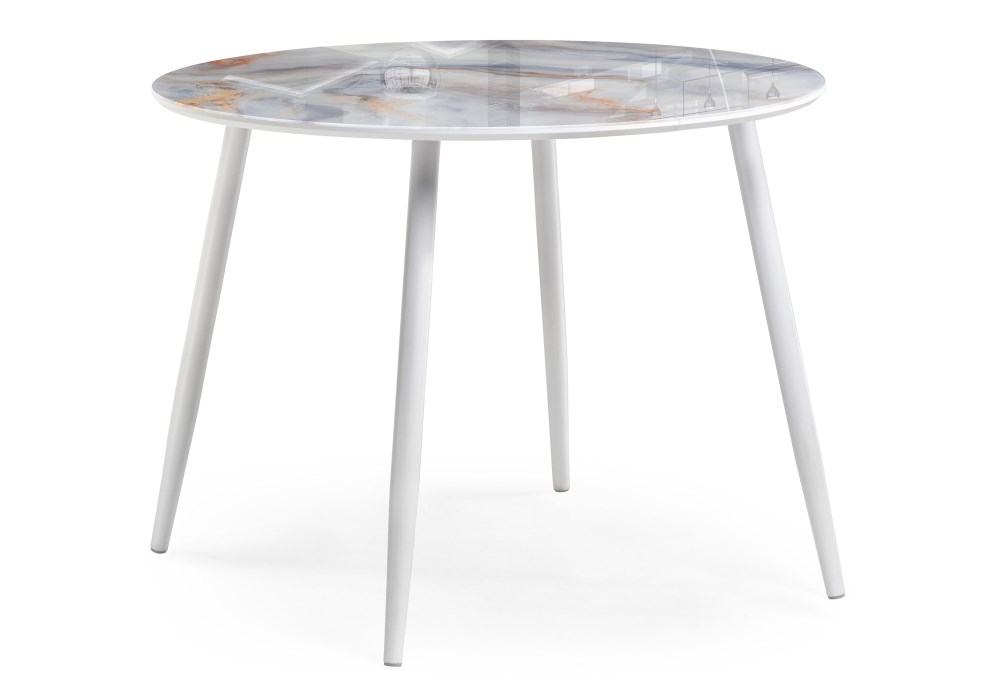 Стеклянный стол Кловис 100(140)х100х76 кианит / белый