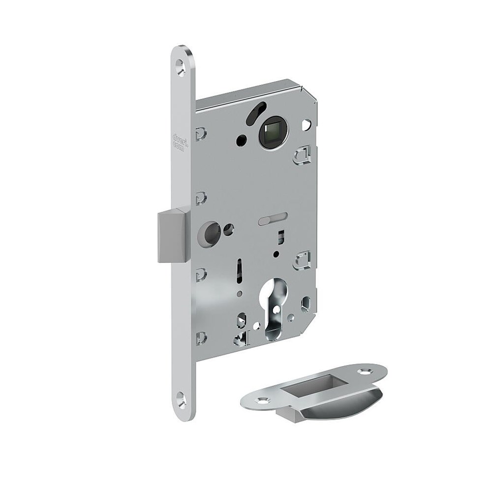 Цилиндровый врезной универсальный замок из стали с язычком из ударопрочного пластика предназначен для установки на межкомнатные двери с запиранием на ключ (ключ/фиксатор).