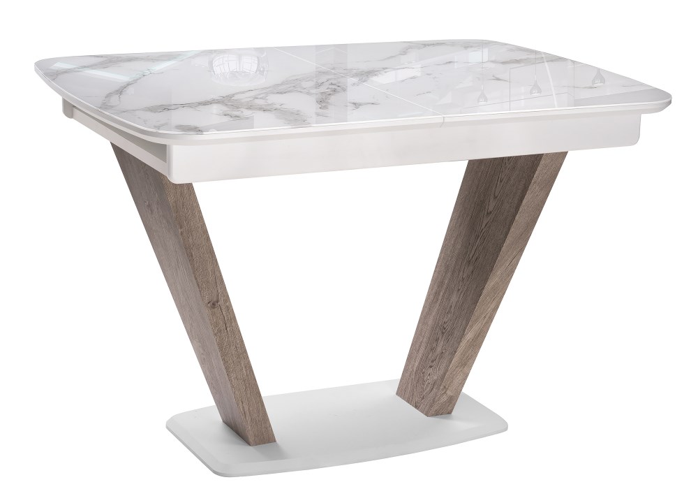 Стол на тумбе Петир дуб с пилением / белая шагрень