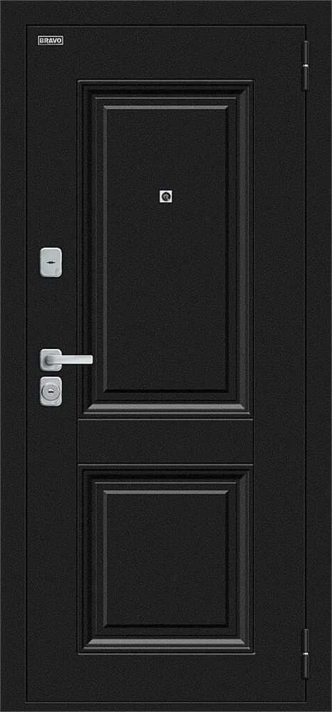 Дверь входная Bravo R Некст МФ/BChrome, Букле черное/Cappuccino Melinga 205*96 Правое