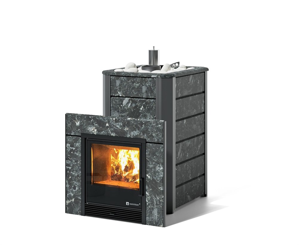 Печь для бани Изистим Ялта 25/2024 в облицовке из камня Пироксенит
