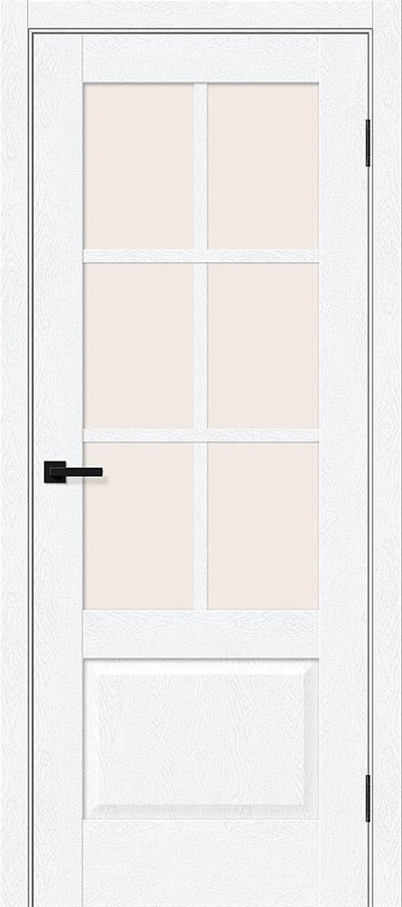 Межкомнатная остекленная дверь рамочной конструкции с объемной филенкой.