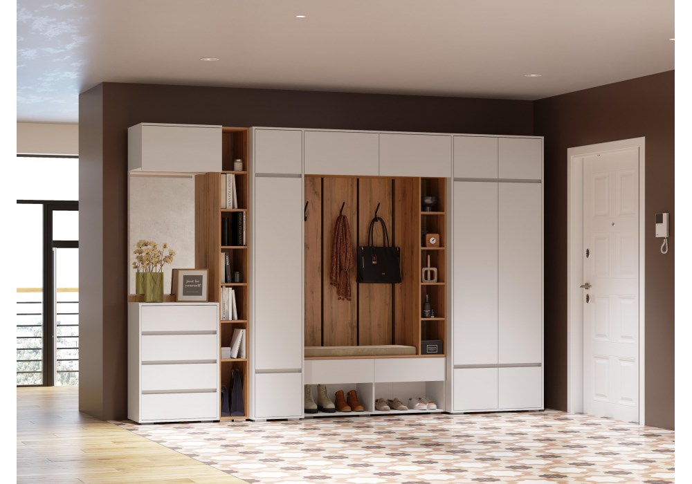 Материал каркаса - ЛДСП; Материал сиденья - ткань; Материал обивки - ткань; Ширина - 263,6; Глубина - 44; Высота - 217,6;