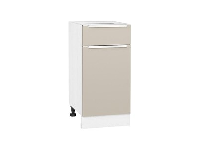 Кухонный Шкаф нижний с 1-ой дверцей и ящиком Фьюжн Белый, Cream Silk, 400, каркас ЛДСП Белый, фасад МДФ Cream Silk, 816*400*480