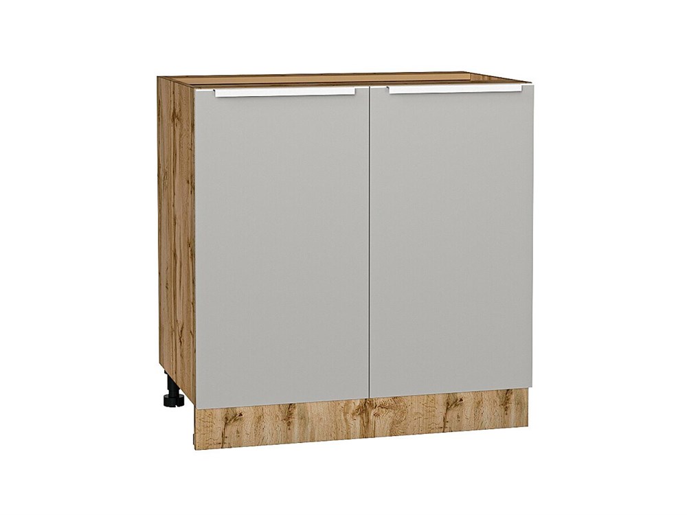 Кухонный Шкаф нижний с 2-мя дверцами Фьюжн Дуб Вотан, Silky Light Grey, 800, каркас ЛДСП Дуб Вотан, фасад МДФ Silky Light Grey, 816*800*480