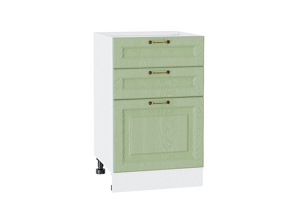Кухонный Шкаф нижний с 3-мя ящиками Ницца Белый, Дуб оливковый, 500, каркас ЛДСП Белый, фасад МДФ Дуб оливковый, 816*500*478