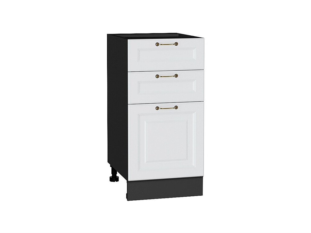 Кухонный Шкаф нижний с 3-мя ящиками Ницца Graphite, Белый, 400, каркас ЛДСП Graphite, фасад МДФ Белый, 816*400*478