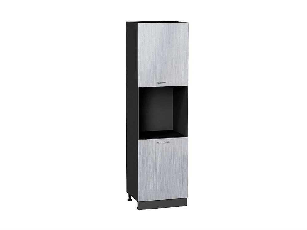 Кухонный Шкаф пенал с 2-мя дверцами под технику Валерия-М Graphite, Серый металлик дождь светлый, 2140, каркас ЛДСП Graphite, фасад МДФ Серый металлик дождь светлый, 2132*600*574