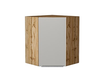Кухонный Шкаф верхний угловой Фьюжн Дуб Вотан, Silky Light Grey, 720, каркас ЛДСП Дуб Вотан, фасад МДФ Silky Light Grey, 716*600*600