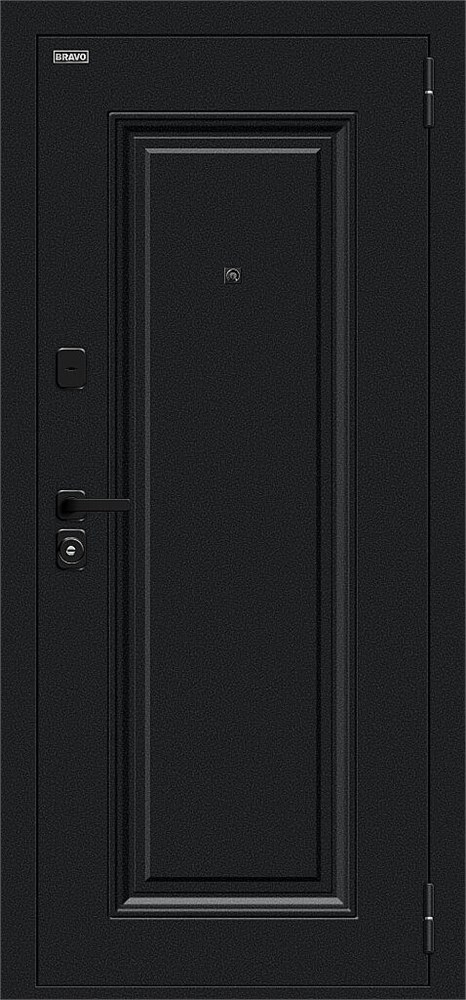 Дверь входная Bravo R Сьют МФ/SBlack, Букле черное/White Silk 205*86 Левое