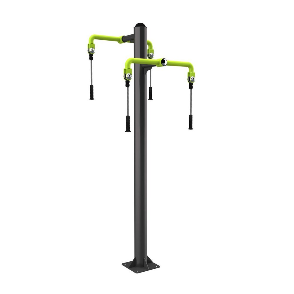 Конструктивно тренажёр состоит из рамы, и рычагов. Через узлы вращения к столбу подвешены рычаги с рукоятками для хвата. За счёт применения специально разработанных узлов с ограничением вращения, в конструкции отсутствуют открытые отбойные элементы, что ведёт к уменьшению травмоопасности и исключает любое соударение частей тренажёра. Угол отклонения рычага 40˚ в каждую сторону.