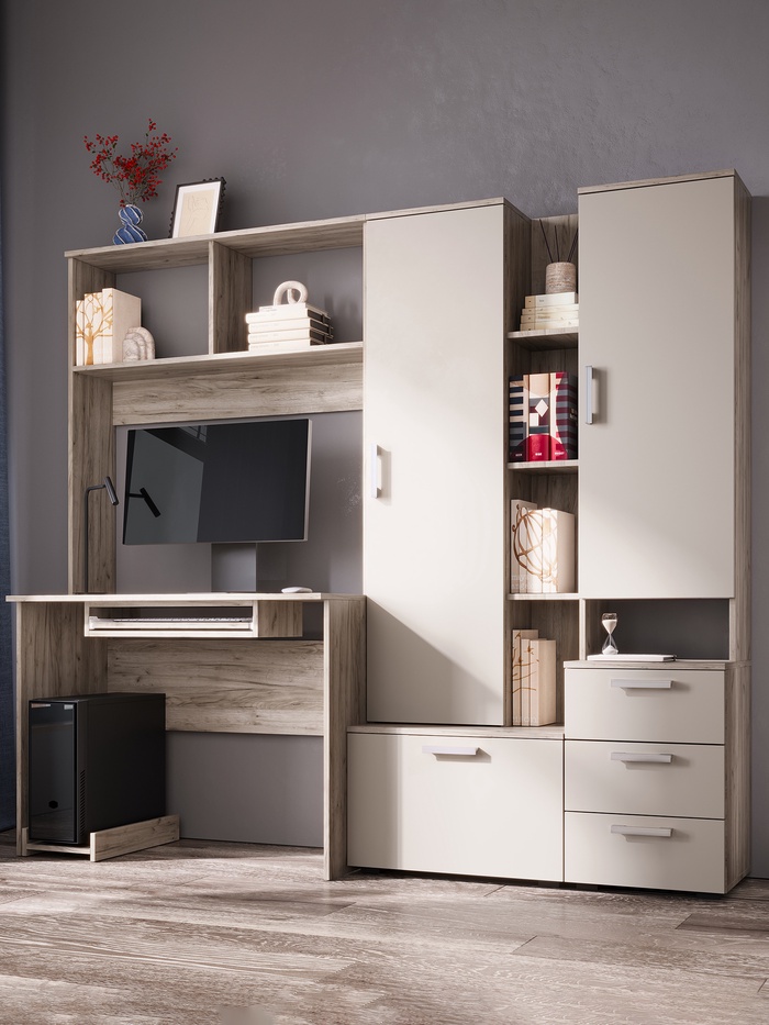 Стол компьютерный со шкафами №6, 2000х538х1796, Кашемир/Крафт серый