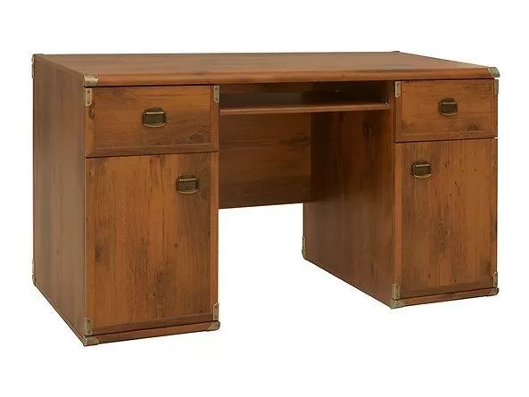 Главное требование при обустройстве рабочей и учебной зоны – ее соответствие потребностям и анатомическим параметрам пользователя. Письменный стол Indiana дуб саттер виртуозно решает поставленные задачи и мотивирует к труду. Он имеет классическую конструкцию с просторной столешницей размером 140×65 см. Высота находится в чуть более средних границах и составляет 78 см. Оптимально для молодых и взрослых людей среднего роста. С обеих сторон письменного стола Indiana дуб саттер установлены тумбы с распашными дверцами и ящиками. Для комфортного пользования белорусский производитель BRW оснастил их роликовыми направляющими. Под столешницей располагается отсек под клавиатуру. Углы защищены металлическими накладками, которые одновременно являются и стильными элементами декора. Фасады имеют поверхность благородного, старого дуба с естественными прожилками древесины. Просторная поверхность письменного стола Indiana дуб саттер позволит с комфортом расположить здесь компьютер и письменные принадлежности. Матовая столешница умеренного коричневого оттенка не вызовет переутомления глаз и позволит полностью сосредоточиться на занятии. Такой стол станет отличным решением для наполнения комнаты школьника, домашней библиотеки или рабочего кабинета. Она станет гармоничным дополнением классической обстановки и интерьеров в стиле кантри.