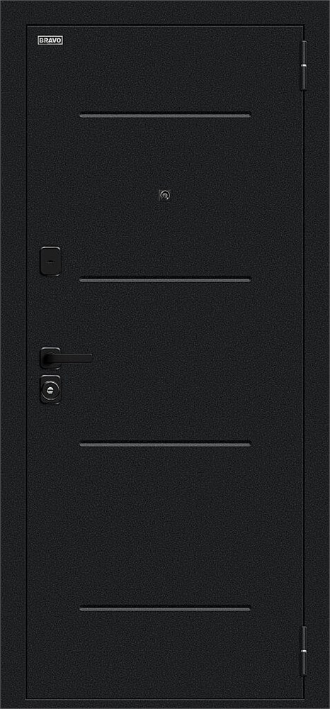 Дверь входная Bravo R Техно/SBlack, Букле черное/White Silk 205*96 Правое
