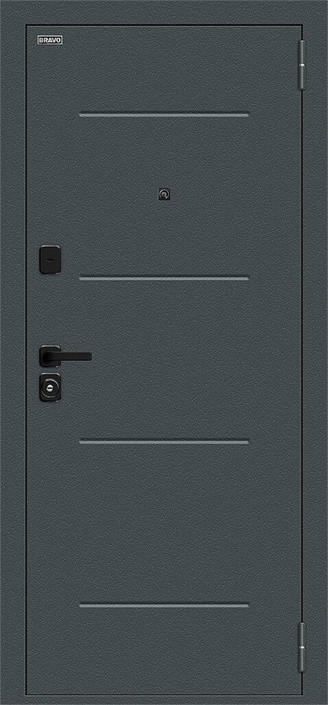 Дверь входная Bravo R Техно/SBlack, Старк антрацит/White Silk 205*96 Левое