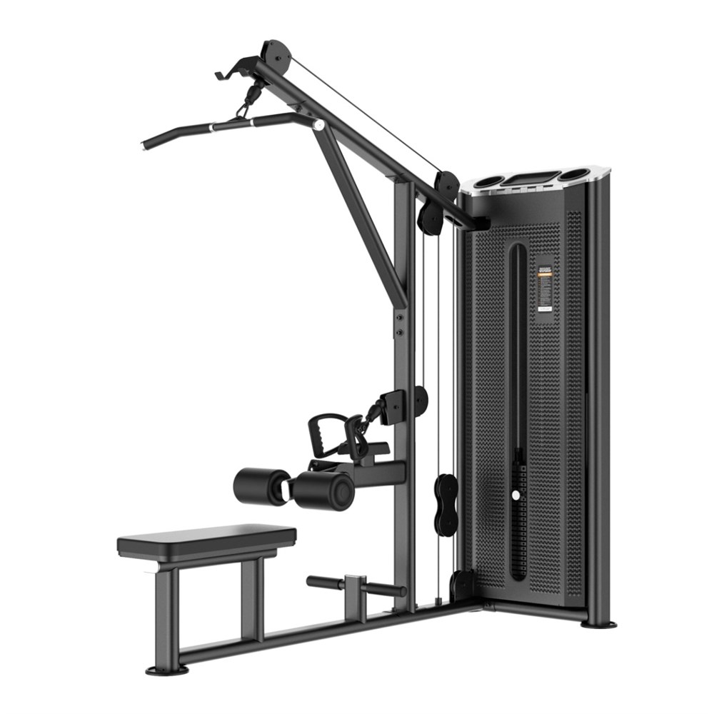 Профессиональный тренажер для коммерческого использования с двойной функцией U2085 Тяга сверху/Гребная тяга предназначен для упражнений на комплексное развитие мышц верхней части спины – широчайших, дельт, трапециевидных, больших ромбовидных, трицепсов, бицепсов.
