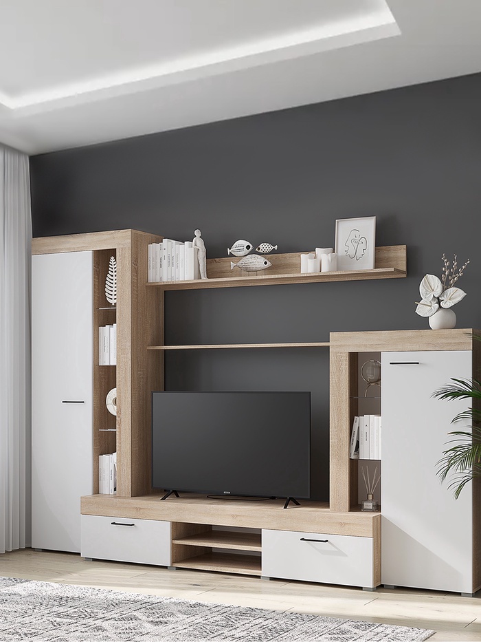 Станет решением для вашей гостиной, сочетая в себе стиль, функциональность и простор. Белый и сонома цвета создают гармоничное сочетание, которое легко впишется в любой интерьер, добавляя уюта и комфорта.