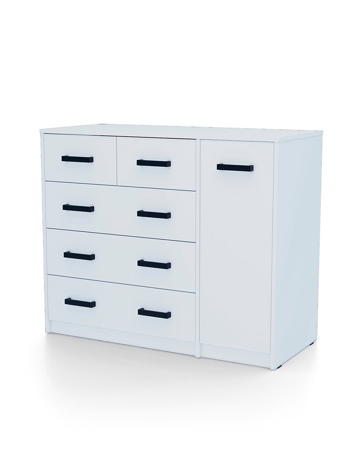 УЦЕНКА Комод 5 ящиков с дверью, 1100×480×900, Белый