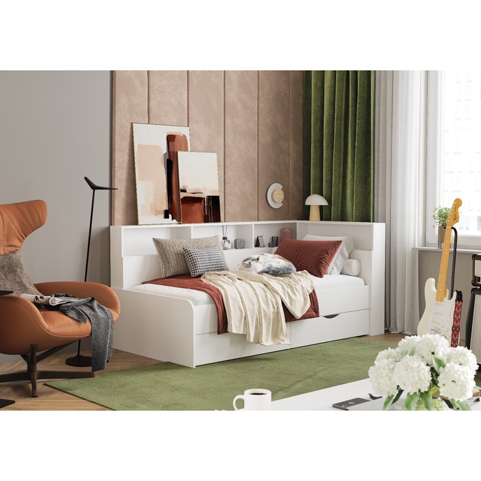 Практичное и стильное решение для подростковой комнаты. С продуманной конструкцией и двумя встроенными ящиками для хранения она обеспечивает комфортный сон и удобство использования.