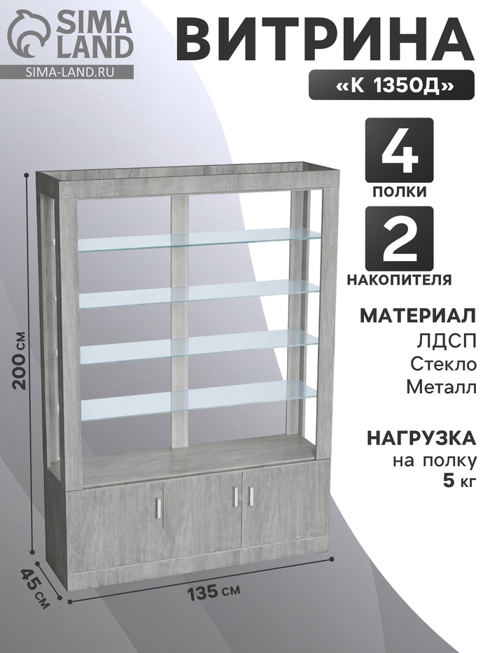 Организуйте пространство для товаров с удобством и стилем! Высокая серая витрина глубиной 1350 мм предназначена для демонстрации широкого ассортимента товаров в магазинах и выставочных залах.