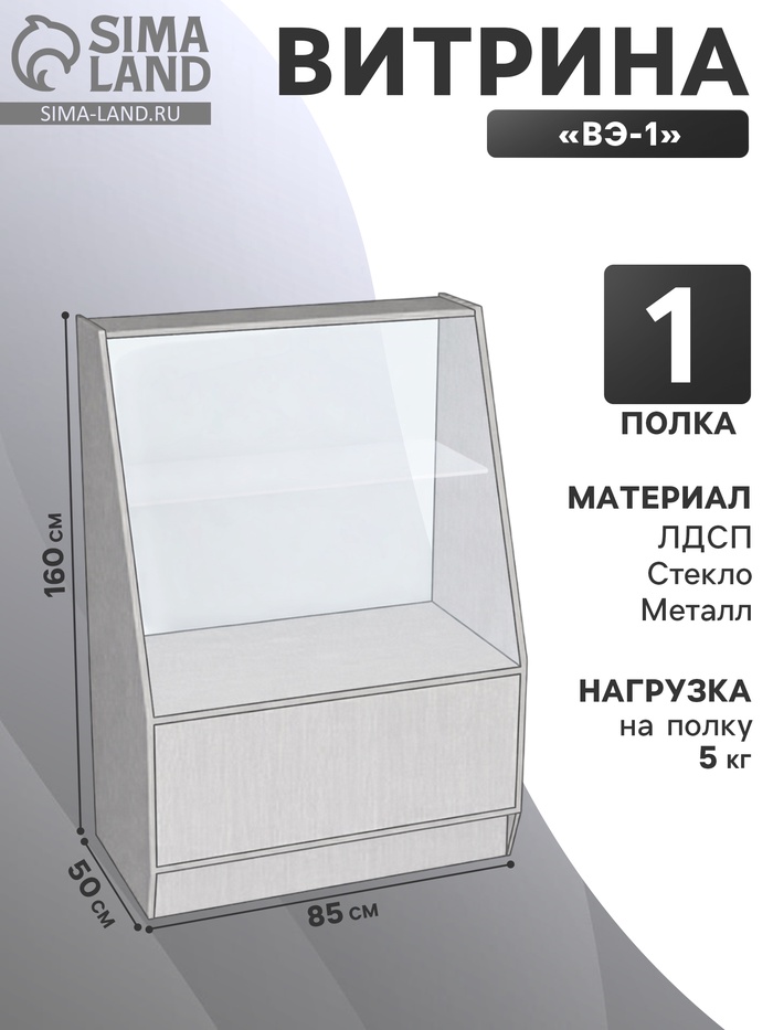 Форма и размеры витрины продуманы до мельчайших подробностей: ширина 850 мм, глубина 500 мм и высота 1600 мм позволяют рационально использовать пространство, не занимая лишнего места. Одна большая полка способна выдерживать нагрузку до пяти килограммов, обеспечивая безопасность и надежность хранения.